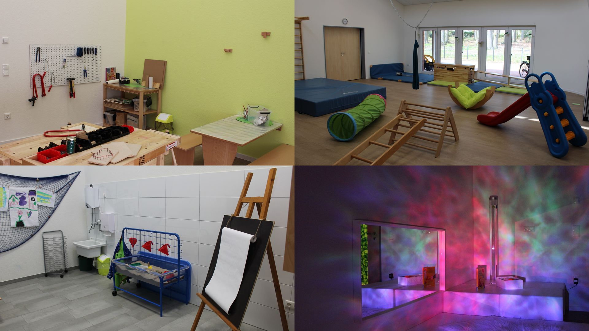 Nach dem gemeinsamen Start in den Vormittag durften die Kinder mit ihren Eltern dann mit dem Spielen loslegen. Die Gruppenräume, sowie die Funktionsräume – der Werkraum, Matschraum, Bewegungsraum, Sonnenraum, Snoezeleraum und der grüne Raum- luden zum vielfältigen Spielen, Basteln, Konstruieren und Toben ein. Aber auch das Frühstück durfte natürlich nicht fehlen. Im Gruppenraum gab es somit auch die Möglichkeit, gleitend, während all den anderen Aktivitäten, beim Frühstück zu verweilen.